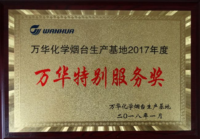 近日,在萬華化學(xué)煙臺生產(chǎn)基地舉行的2018年員工大會上,我公司煙臺分公司以優(yōu)良的業(yè)績,從十幾家承包商中脫穎而出,成為獲得2017年“萬華特別服務(wù)獎”榮譽(yù)的兩家單位之一。這是煙臺分公司繼蟬聯(lián)“萬華煙臺優(yōu)秀承包商”殊榮后,再獲業(yè)主表彰的重要大獎,體現(xiàn)了萬華煙臺生產(chǎn)基地對2017年“齊魯建設(shè)”檢維修業(yè)績與管理水平的充分肯定和認(rèn)可,彰顯了“齊魯建設(shè)”的品牌形象。