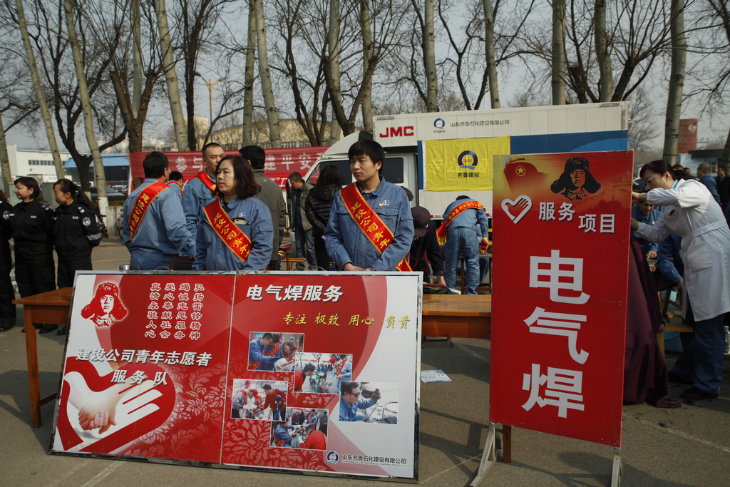 陽春三月,萬物爭春。今年3月5日是全國第55個學雷鋒紀念日,3月10日周六7:30不到,公司志愿服務人員在團委和參與車間領導帶領下,早早來到辛店文化宮小廣場,參加由齊魯石化團委等聯合舉辦的 “傳承企業(yè)精神,共建美好家園”志愿者大型為民服務活動。“齊魯建設”的火電焊維修一直是特色服務項目,活動中,他們用極致、用心的服務態(tài)度,一上午共計維修包括:三輪車、自行車、電動車、梯子、凳子、鍋碗瓢盆、刀剪鐮刀鍋鏟等大小物件70余件、服務近50人次,讓每一位接受服務的社區(qū)居民都帶著稱心的笑容滿意離開。