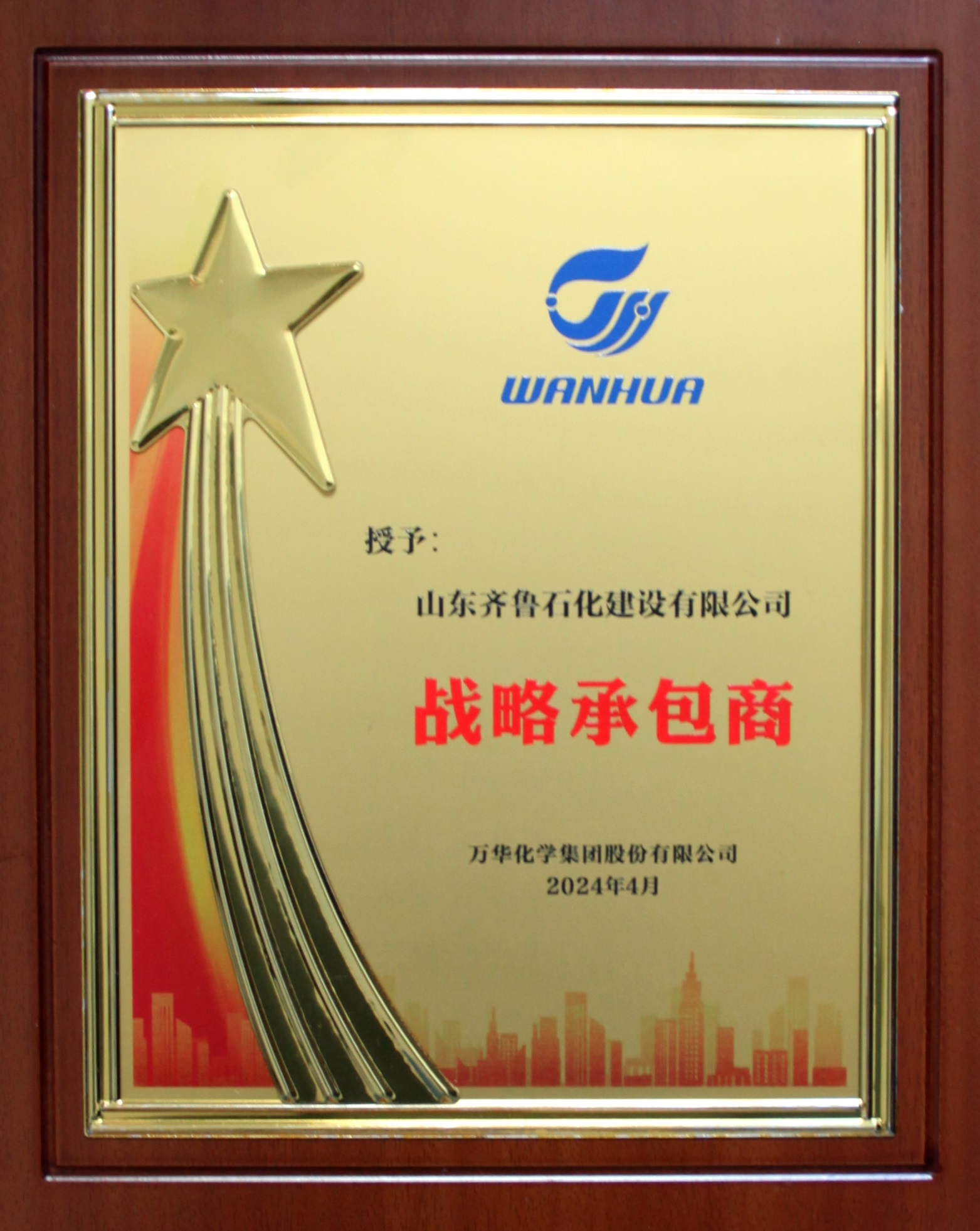 4月2日,在煙臺萬華化學集團生產(chǎn)承包商大會上,我公司榮獲萬華化學“戰(zhàn)略承包商”表彰。