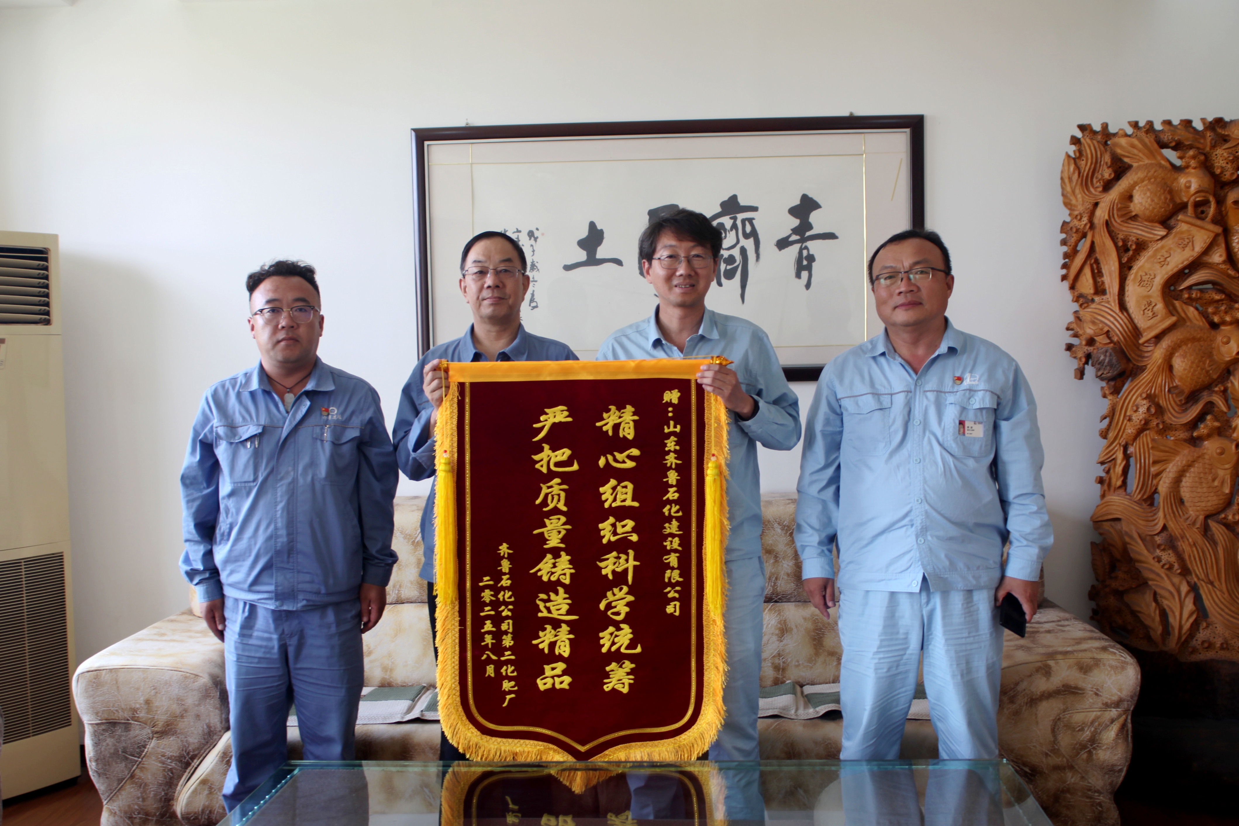 8月8日上午,第二化肥廠副經(jīng)理鄧劍和副總工程師、機(jī)動科科長高波專程送來錦旗,對我公司圓滿完成第二化肥廠大檢修并一次開車成功作出的努力表示感謝!