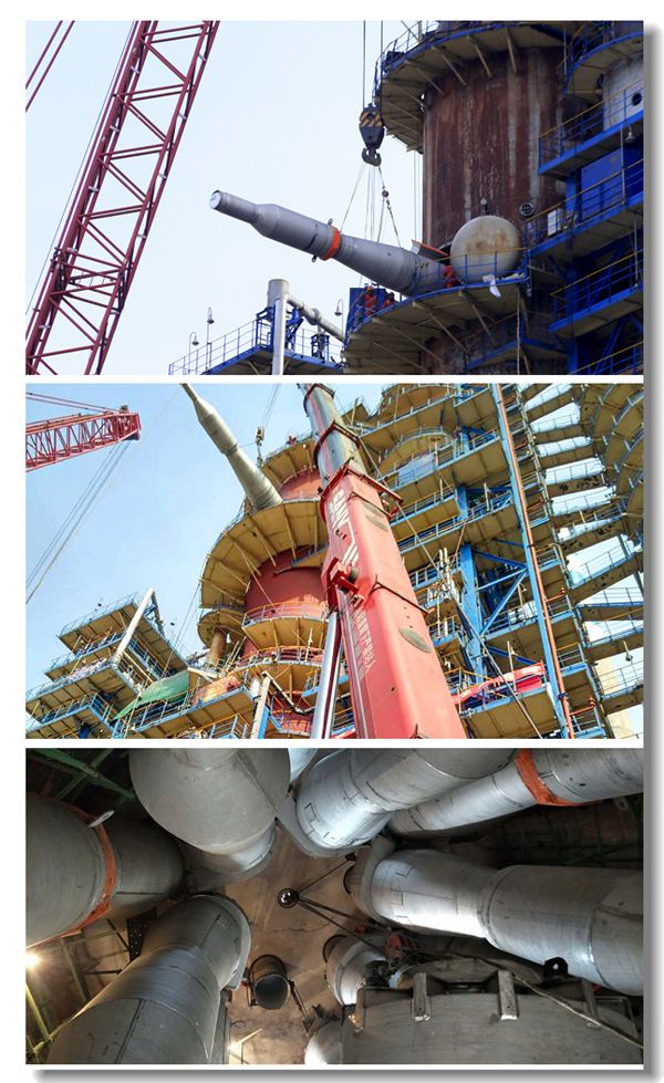 由公司承擔(dān)的3月份齊魯石化煉油廠檢修重點(diǎn)項(xiàng)目——二催化裝置再生器12臺(tái)一、二級(jí)旋風(fēng)分離器更換,由于工期緊、供貨集中、場地狹窄、吊車占位困難,加上旋分器長度長,內(nèi)部構(gòu)件位置緊湊,旋分器由裝卸孔進(jìn)出,障礙物多,作業(yè)難度很大,安全風(fēng)險(xiǎn)高。經(jīng)車間多次與業(yè)主反復(fù)溝通對接檢修方案,擔(dān)負(fù)主要施工任務(wù)的公司“標(biāo)桿班組”工程二處安裝九班,由“金牌員工”段振會(huì)帶領(lǐng),和經(jīng)驗(yàn)豐富的張路波起重班通力協(xié)作,經(jīng)過8個(gè)晝夜奮戰(zhàn),隨著分離器料腿加固、旋分器拆除導(dǎo)出,3月15日15:30,12臺(tái)一、二級(jí)旋分分離器順利吊裝導(dǎo)入至大裝卸孔內(nèi),各項(xiàng)施工安全高效實(shí)現(xiàn)了檢修控制點(diǎn),受到了業(yè)主“把不可能變?yōu)榭赡?rdquo;的高度評價(jià)。“齊魯建設(shè)”再次通過催化裝置“兩器”檢修專家的實(shí)踐,為公司以“安全”定位的品牌建設(shè)增添了新的業(yè)績。